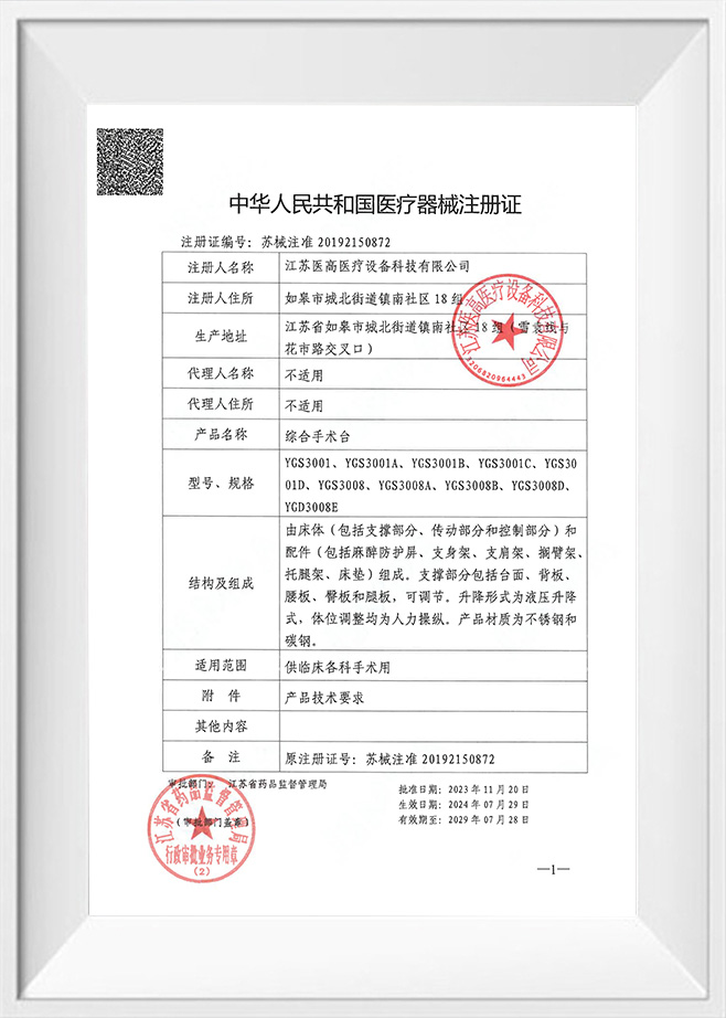 합격한 기업으로 ISO 9001, ISO 13485, ISO 14001, ISO 45001 및 기타 관리 시스템 인증을 획득한 강소 Yigao 의료 장비 기술 유한 회사는 제품 품질을 생명선으로 간주합니다. 우리의 수술대는 엄격히 준수합니다 CE 표준 이는 유럽 시장의 안전, 건강 및 환경 요구 사항을 충족할 뿐만 아니라 제품 설계 및 제조 분야에서 국제 선두 수준을 대표한다는 의미입니다.